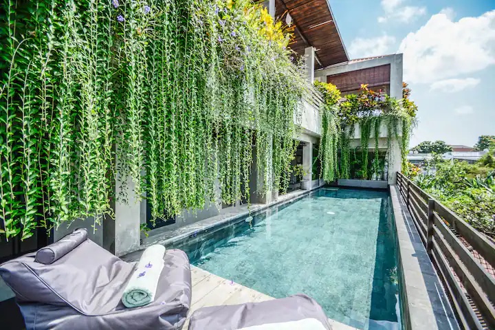 This fully private, four bedroom serviced penthouse with private pool, is located on the third floor of our building. Combining the convenience of a serviced apartment with the luxurious amenities of an open-air villa makes the perfect combination for a family holiday.